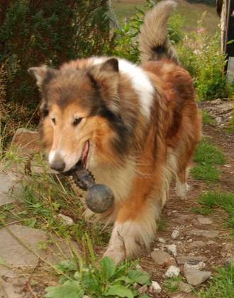 Chandra beim Apportieren am steilen Hang