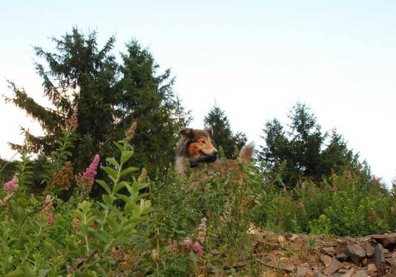 Chandra beim Apportieren am steilen Hang