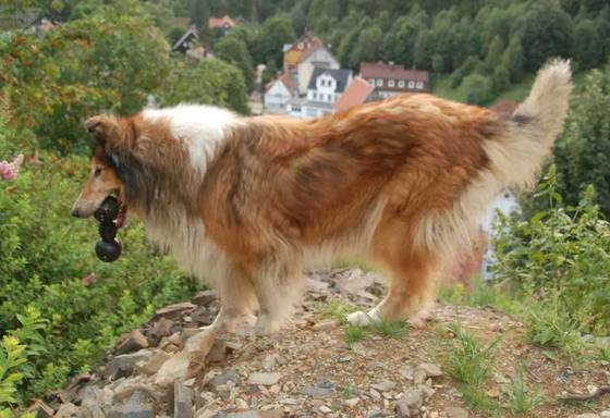 Chandra beim Apportieren am steilen Hang