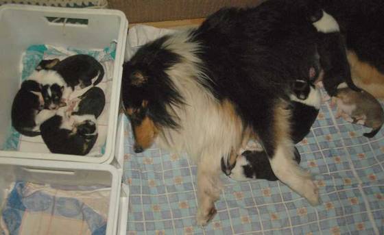 Saugwelpenphase Y-Wurf-Colliewelpen