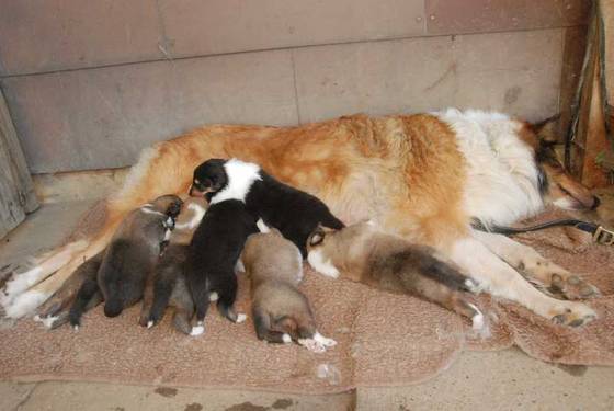 Amerikanischer Collie mit 15-21 Tage alten Welpen