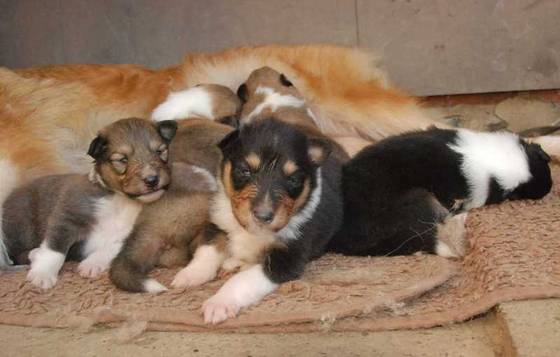Amerikanischer Collie mit 15-21 Tage alten Welpen