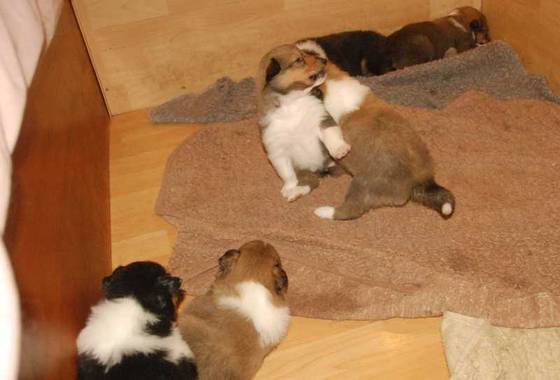 Amerikanischer Collie mit 21-28 Tage alten Welpen