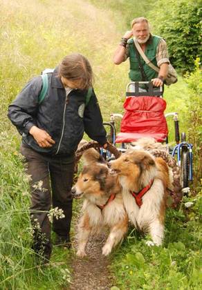Norvin mit Chandra vor dem Sacco Dog Cart